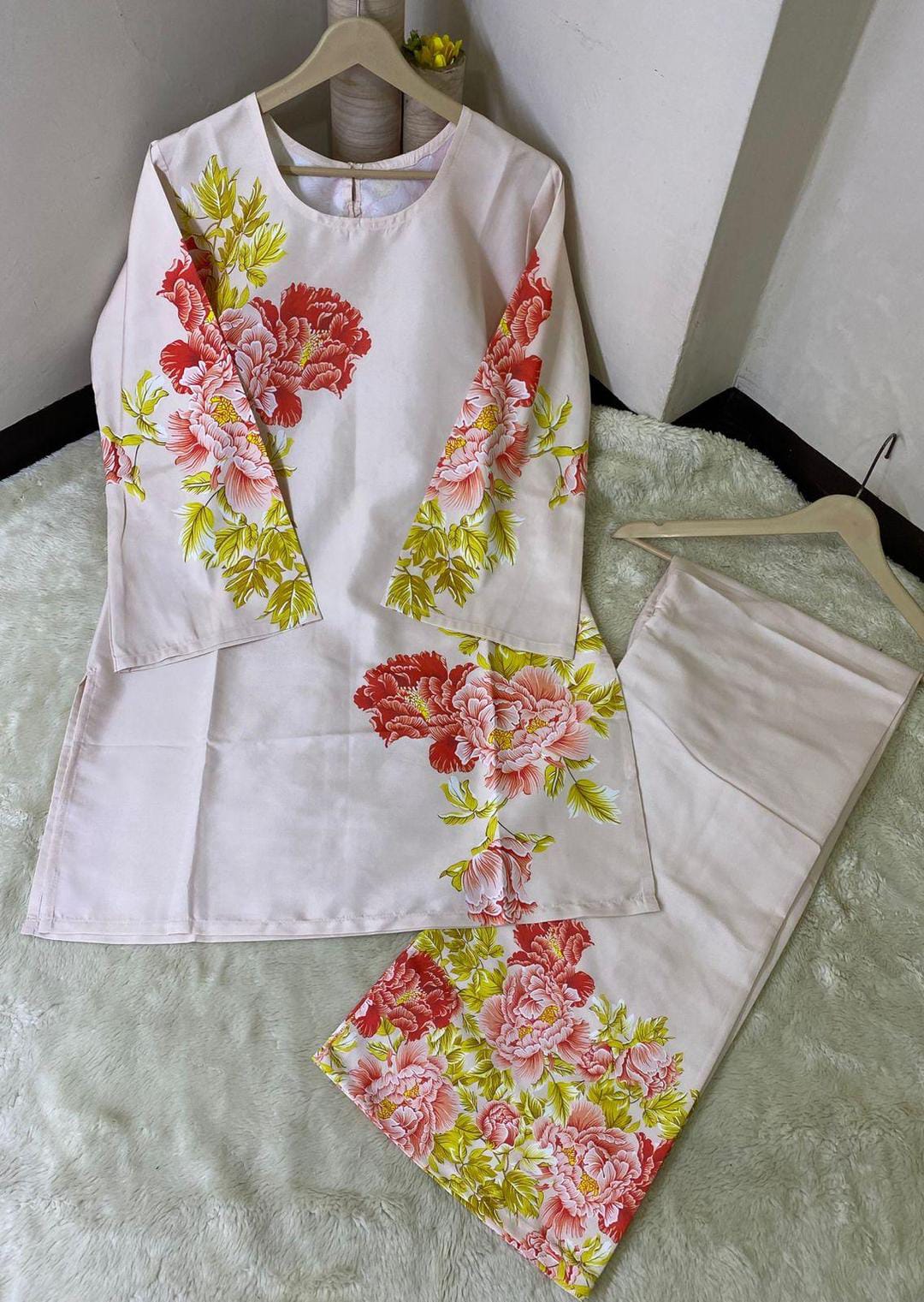 Product Description: Digital printed cord set Good quality stitching Full suit overlock Fabric : Swiss lawn soft fabric Standard size Chest 21 Shirt length 36 Flyper length 39