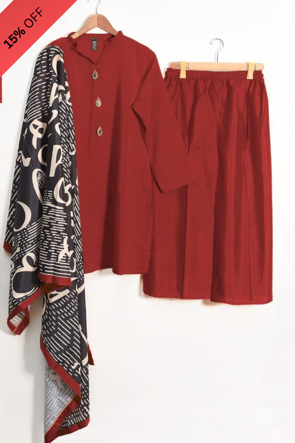Product Name: 3 Pcs Women's Stitched Grip Silk Plain Suit
