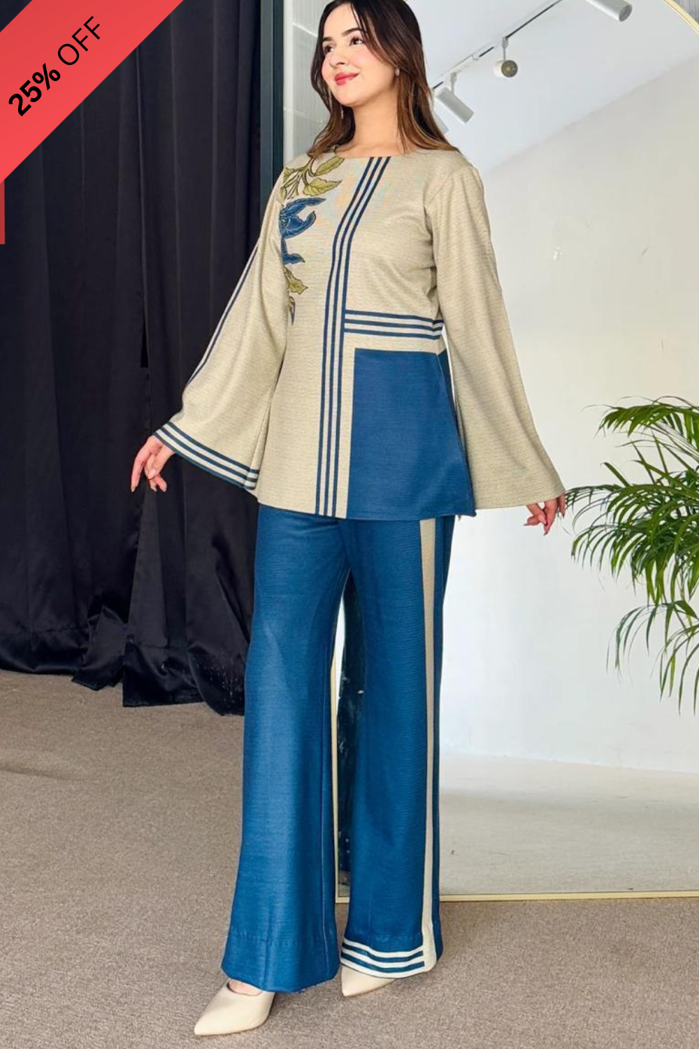 Stylish Blue Printed Women's Stitched Shirt and Trouser Set - 2 Pcs